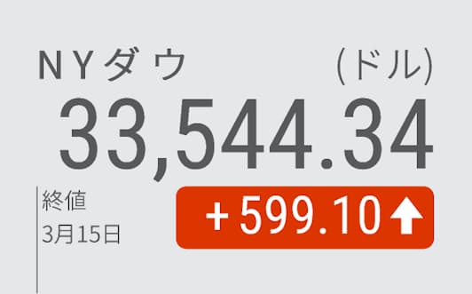 【NQNニューヨーク=古江敦子】15日の米株式市場でダウ工業株30種平均は大幅に続伸し、前日比599ドル10セント(1.8%)高の3万3544ドル34セントで終えた。原油先物相場が連日で大幅に下落し、インフレ懸念が和らいだ。消費関連株や、足元で下げがきつかったハイテク株など幅広い銘柄が買われた。